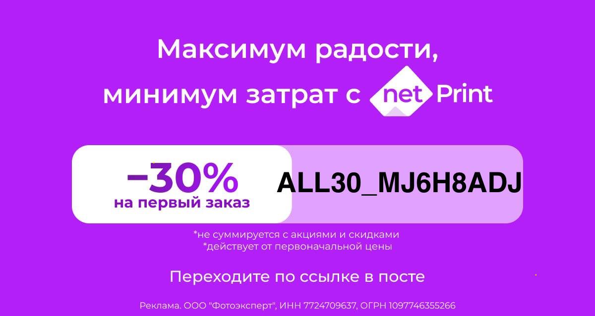 Промокод дает право скидки 30% на первый заказ в «Нетпринт».