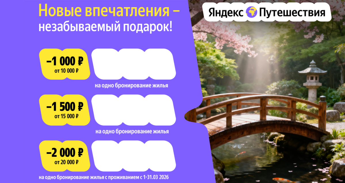 Скидки до 2000 р. на бронирование в Яндекс Путешествиях